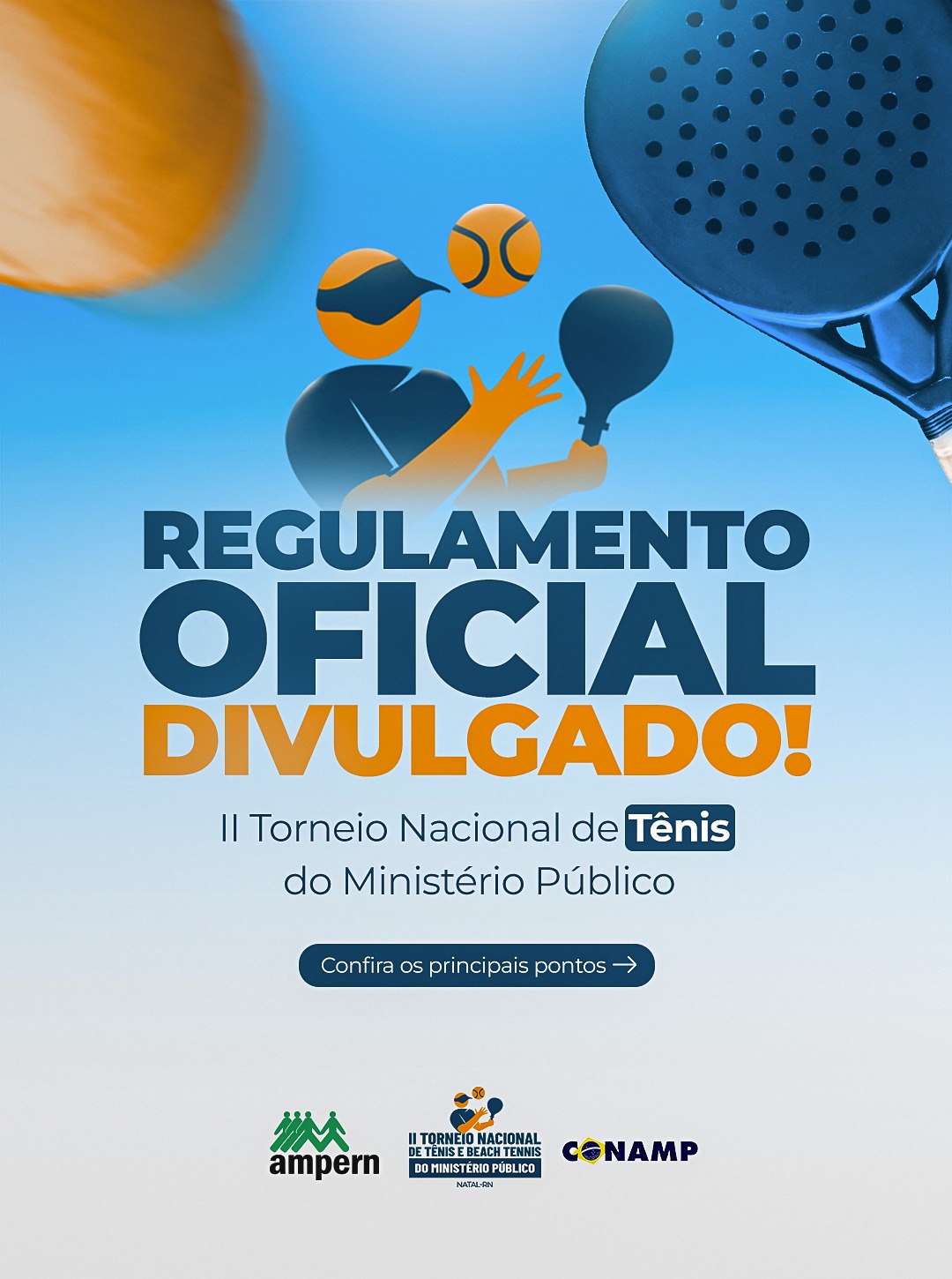 O documento completo com todas as normas, critérios de participação, formato das partidas e demais disposições está disponível para acesso por meio do link na bio e nos canais oficiais da AMPERN e da CONAMP.