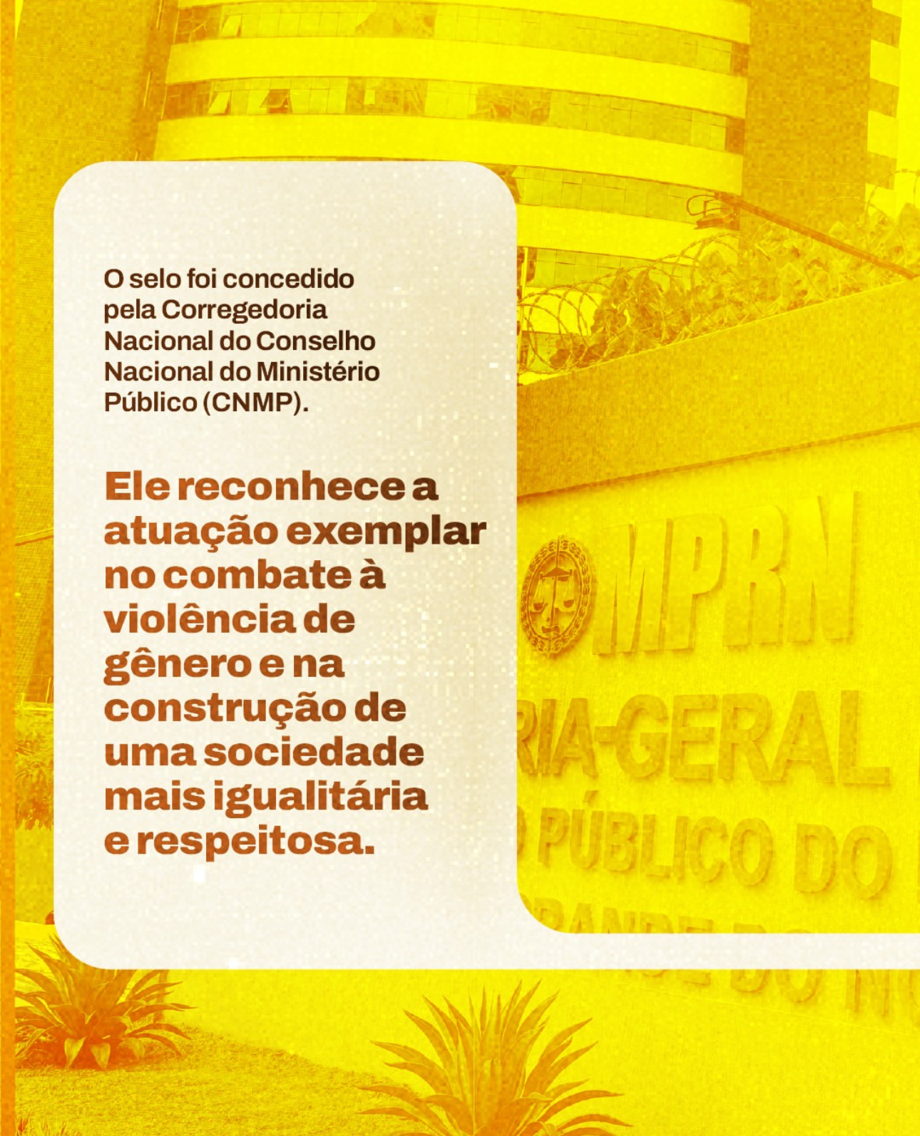 O Ministério Público do Rio Grande do Norte foi contemplado com o Selo Ouro na premiação “Respeito e Inclusão no Combate ao Feminicídio”, promovida pelo CNMP. A condecoração integra a campanha institucional “MP em Ação: Fortalecimento no combate ao feminicídio – Respeito e Inclusão”, voltada ao reconhecimento de práticas efetivas de enfrentamento à violência contra a mulher.