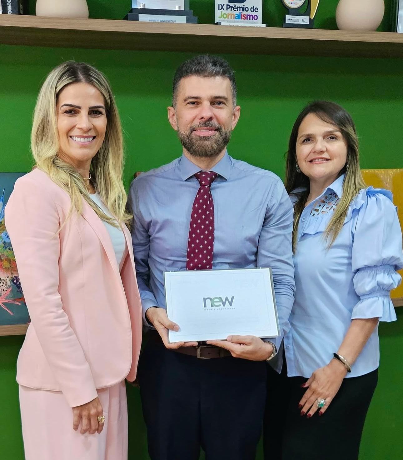 O presidente da Associação do Ministério Público do Estado do Rio Grande do Norte, Dr. Clayton Barreto , reuniu-se com a arquiteta Analuiza Costa e com Karol Sales , representante da New Móveis, para discutir o projeto de reforma da sala de reunião e do pavimento superior da sede administrativa da entidade.