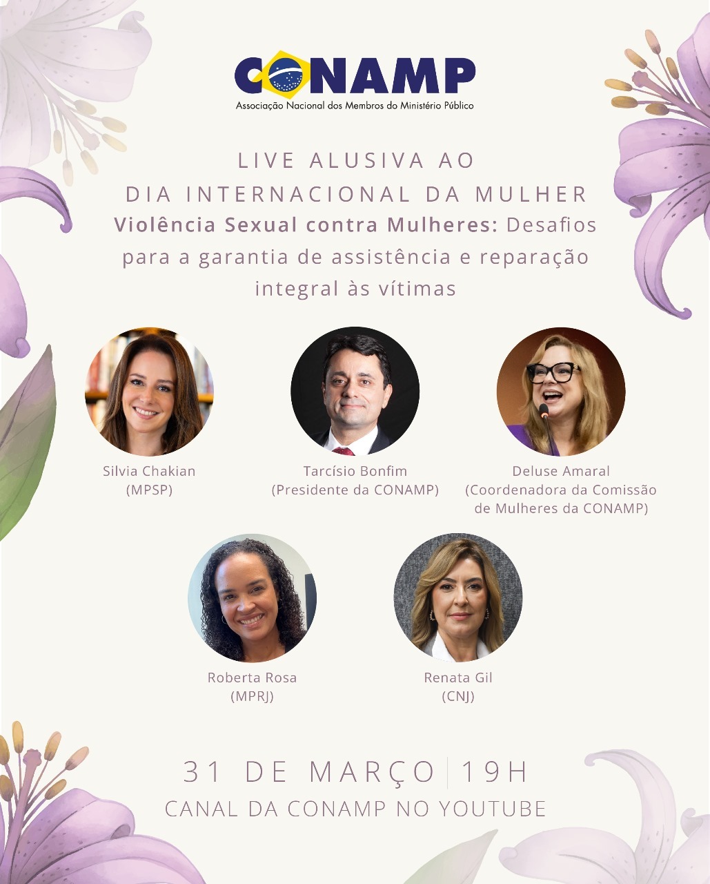 Salve esta data! No dia 31 de março, às 19h, a CONAMP promove uma live essencial sobre “Violência Sexual contra Mulheres: Desafios para a garantia de assistência e reparação integral às vítimas”.