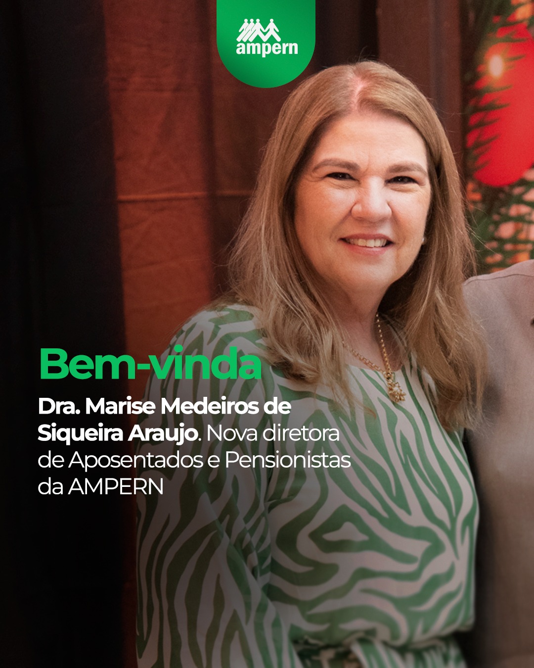 A AMPERN parabeniza e dá as boas-vindas à associada Dra. Marise Medeiros de Siqueira Araujo, que assumiu a Diretoria de Aposentados e Pensionistas da nossa associação.